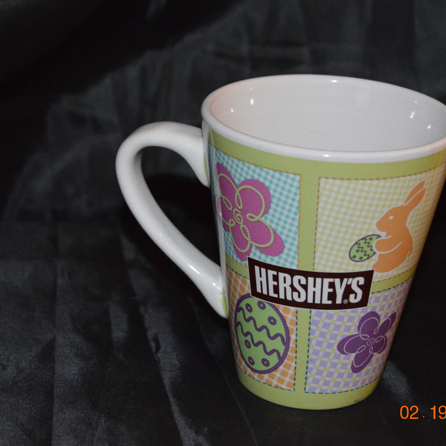 Hershey Easter Bunny Theme Hot Chocolate/Coffee Ceramic Mug, very lightly pre-loved, no chips or cracks, in excellent condition, this mug is 4 1/5" tall 3 3/4" in diameter, Is dishwasher and microwave safe. Perfect for adding a touch of seasonal charm to your beverage experience. This delightful and practical mug embodies both humor and functionality, making it a wonderful addition to any mug collection.